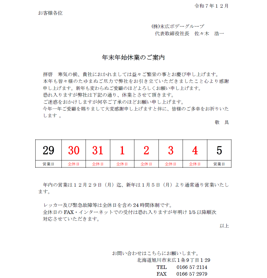 (株)末広ボデー / (株)オートランド旭川 / (株)カーレスキュー末広